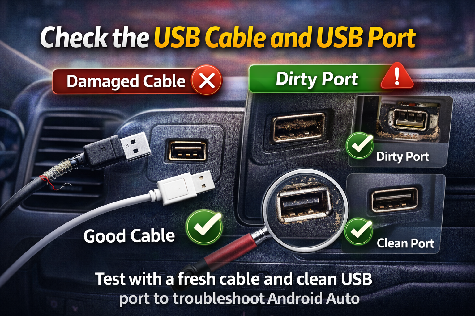 A bad cable is one of the most common reasons for Android Auto not connecting.