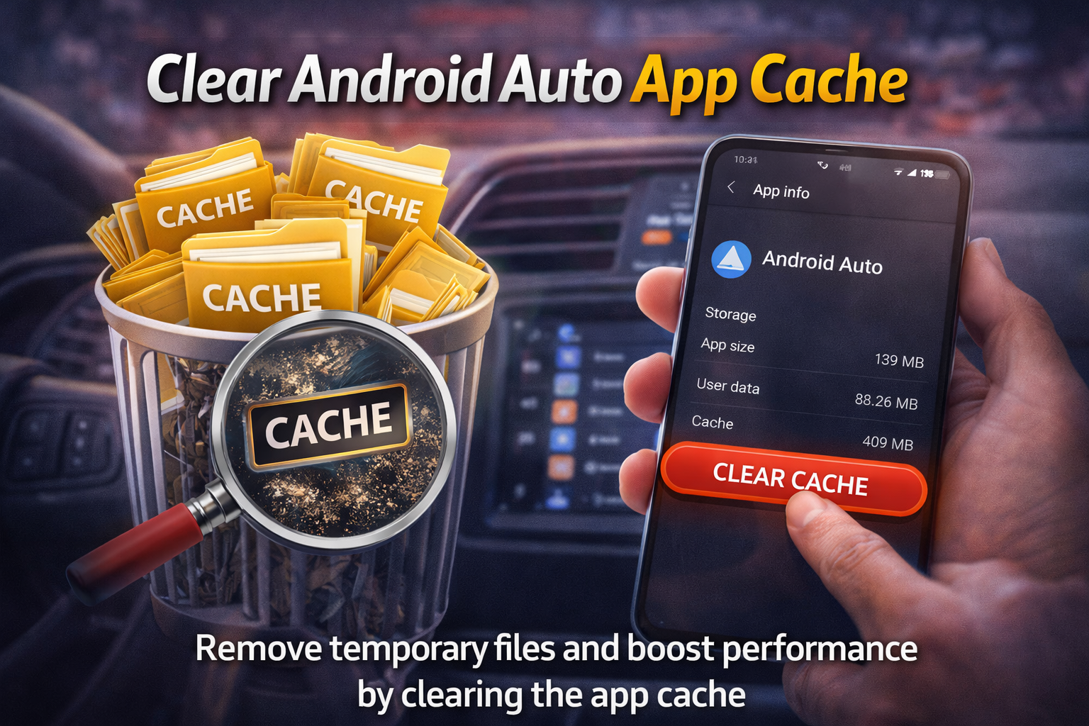 If Android Auto is corrupted or stuck, clearing cache can help.