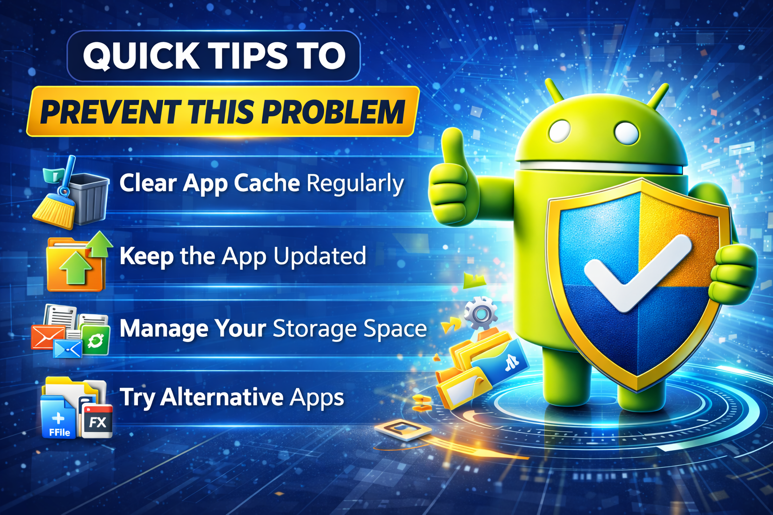 Keeping your phone updated, maintaining enough storage space, and clearing cache regularly will help ensure the Android File Manager works smoothly in the future.