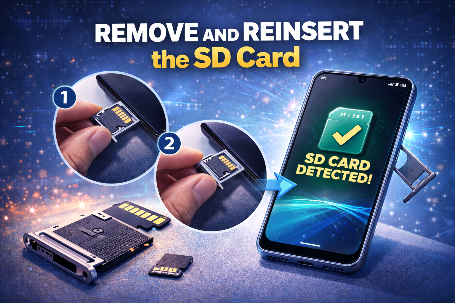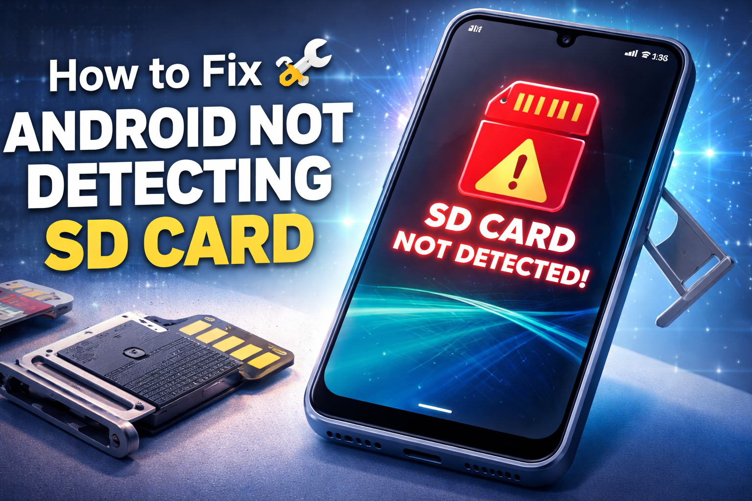 The Android not detecting SD card problem can happen for several reasons. The SD card may not be inserted correctly, the card may be dirty, the file system may be corrupted, or your Android phone may have trouble reading the card format. Sometimes the issue comes from the phone itself, not the SD card.
