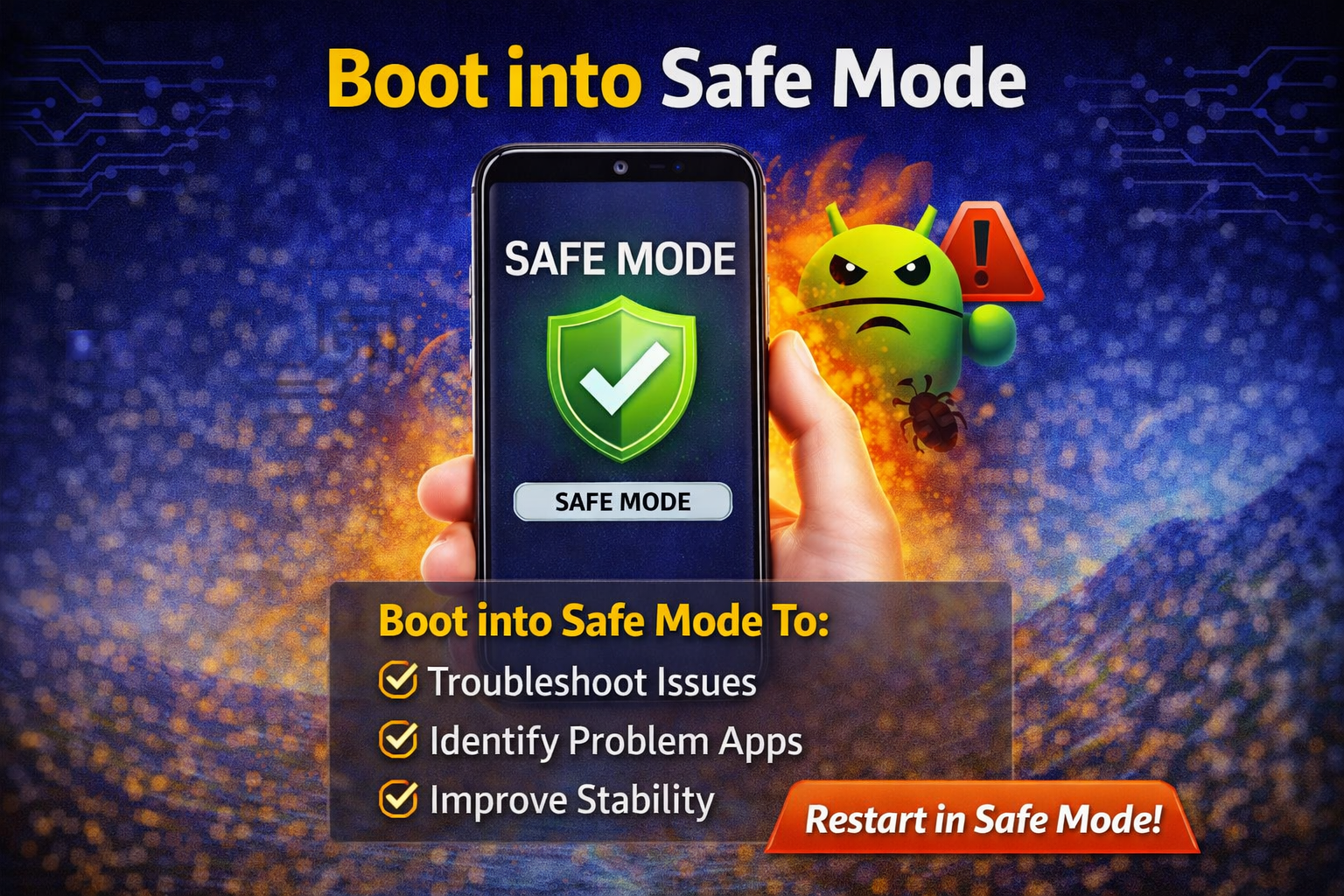 Safe Mode disables third-party apps that may interfere.