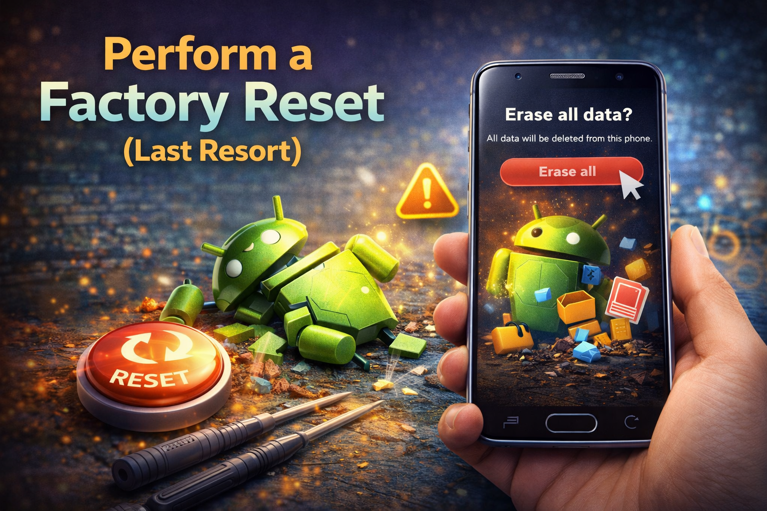 In many cases, factory reset solves serious system errors that prevent Android from working properly.