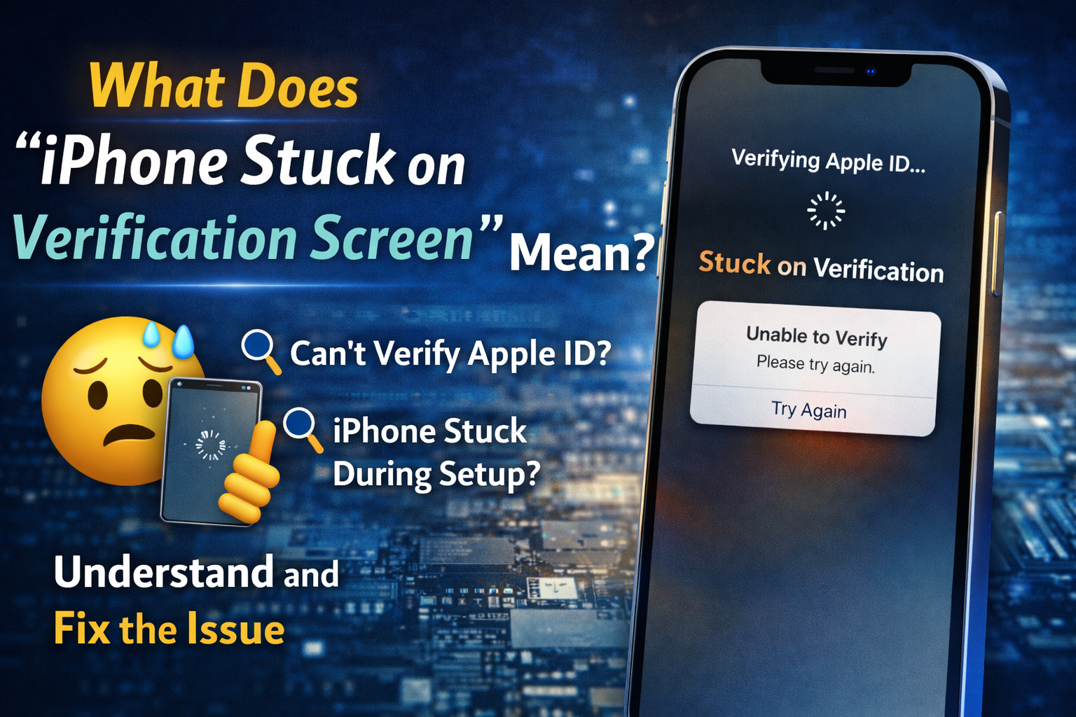 The problem usually happens during Apple ID verification or iCloud sign-in, where your iPhone keeps loading, freezes, or fails to verify your account.