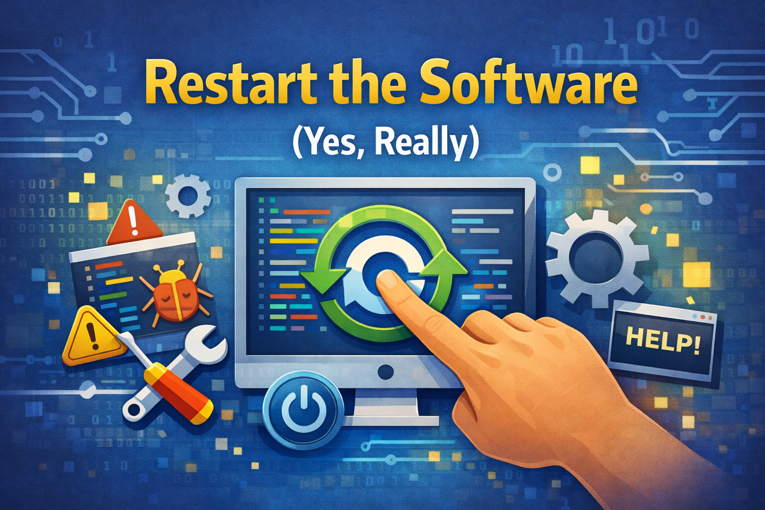 Many software errors are caused by temporary memory or process issues. Restarting clears these instantly.
