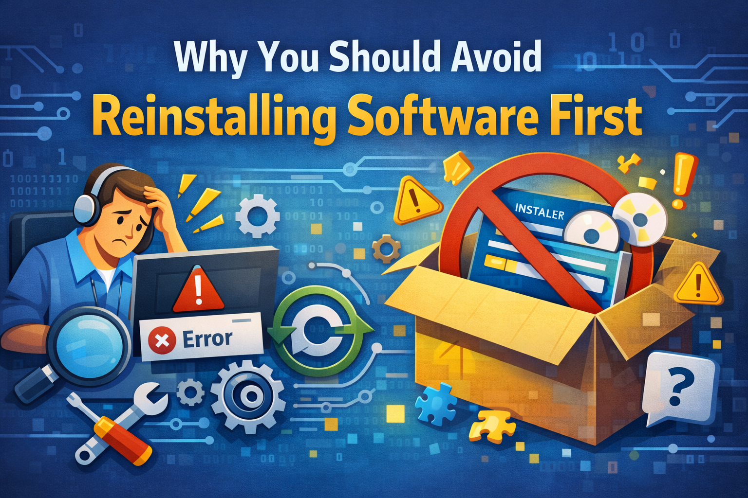 Software problems can be frustrating, especially when your first thought is, “Do I need to uninstall and reinstall everything?” The good news is that you can troubleshoot software errors without reinstalling the program in most cases. Reinstalling should always be the last option, not the first.