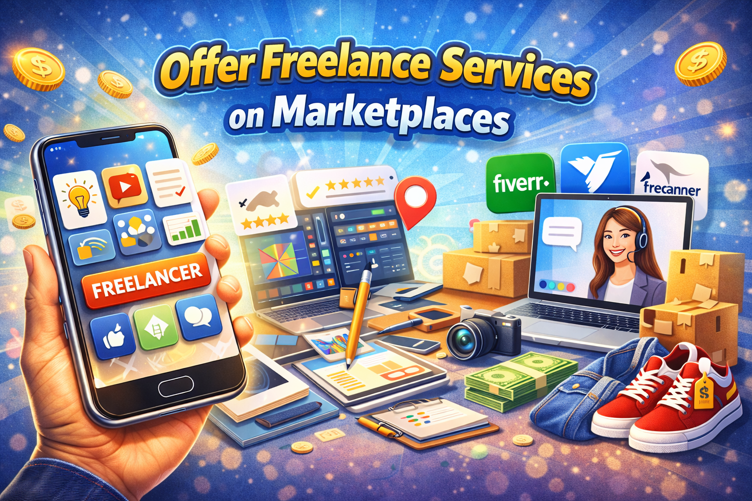Sell your skills on platforms like Fiverr, Upwork, or Freelancer.